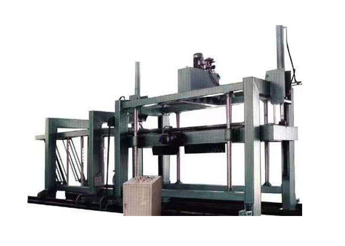 一、概述: 本廠生產的JFQ空中翻轉切割機是在德國伊通技術基礎上,結合國內實際情況開發出的一種簡單、實用、高效的切割機組。翻轉吊具把模具空中翻轉90度后脫模把坯體連同模具側板放置在切割臺上,縱向切割裝置通過電機帶動自身行走,,對放置于切割臺上的坯體進行行走切割,切割完成后行走至暫停位置,橫向切割裝置通過電機帶動自身行走到坯體中央,停止后再進行水平式切割,橫切架自上而下垂直降落切割直至上升復位。 二、工作方式: (1)小車行走:預養好的坯體帶模空中翻轉90度,然后將坯體放在切割機上,由脫模機構脫去模框。然后水平切割車進行水平切割,水平切割好后,橫切小車定位自上而下進行垂直切割,切割好后橫切小車復位,吊起坯體,水平切割車復位。 (2)坯體行走:預養好的坯體帶模空中翻轉90度,然后將坯體放在切割小車上或輥道上,由脫模機構脫去模框。坯體通過小車或輥道行走進行水平切割,切割好后坯體繼續前行至橫切位置定位,進行橫向切割,切割好后前行由行車吊走坯體。 三、主要特點: 1、該空中翻轉式切割機機構簡單、緊湊,維修方便。 2、工作效率高,在切割坯體的同時另一邊可進行坯體翻轉。 3、空中翻轉切割機設備翻轉平衡可靠。 4、坯體切割精度高。 5、橫切傳動兩種形式:機械傳動和液壓傳動。